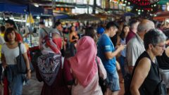 香港らしい味のある室外機の列や、雄大な竹製の足場などを眺めながら歩きます。