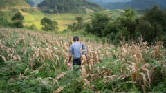 優雅に高原の朝食を摂っていると(菓子パンをかじっていただけだが)、3人のモン族の子供達が付近で遊んでいたので、写真を1枚撮らせてもらった。