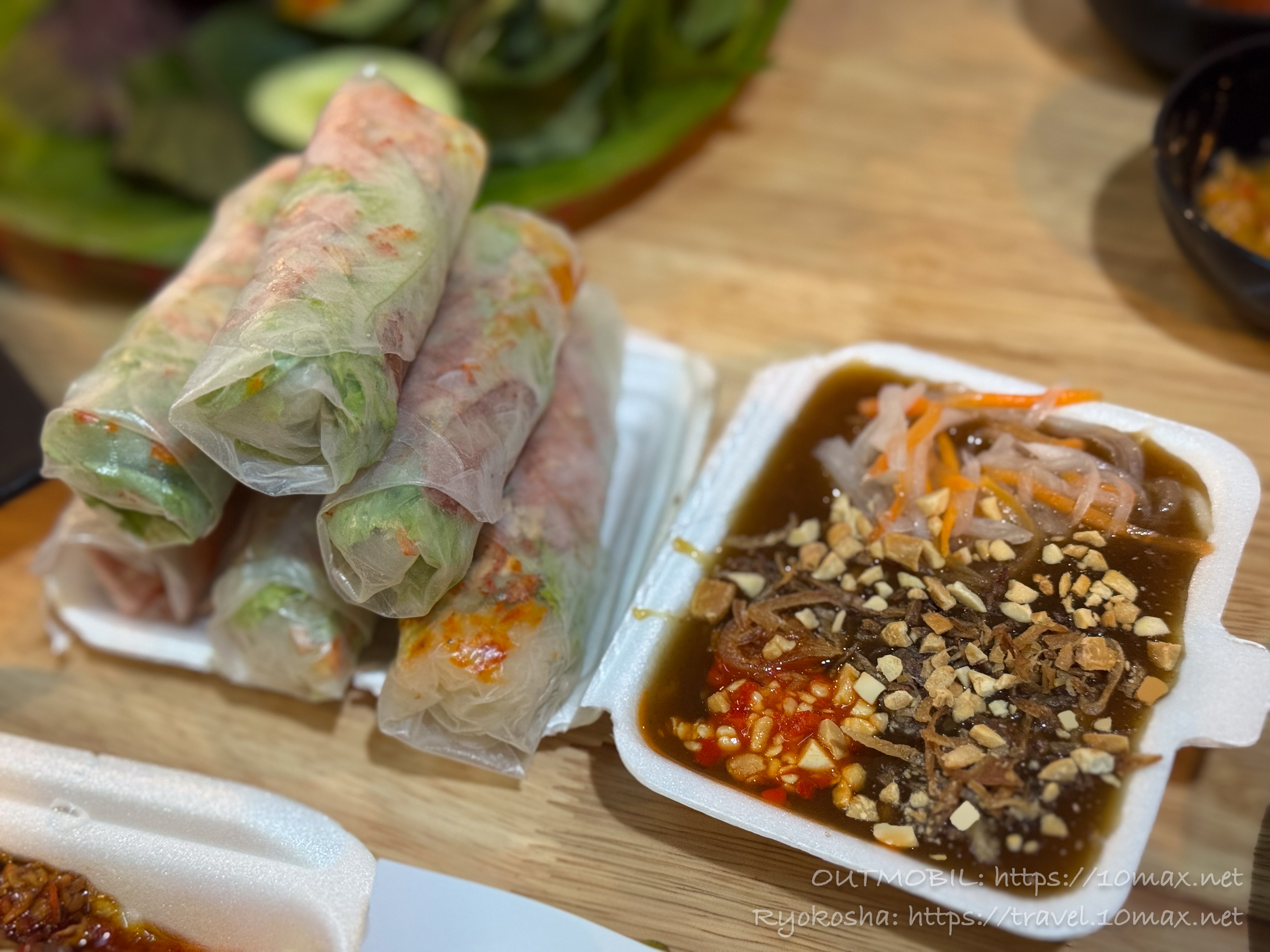 春巻きのようなものもあります。春巻きというか、具をライスペーパーで巻いたものですね。少しお腹にたまるものが食べたい時におすすめです。相場は1本10,000ドン。