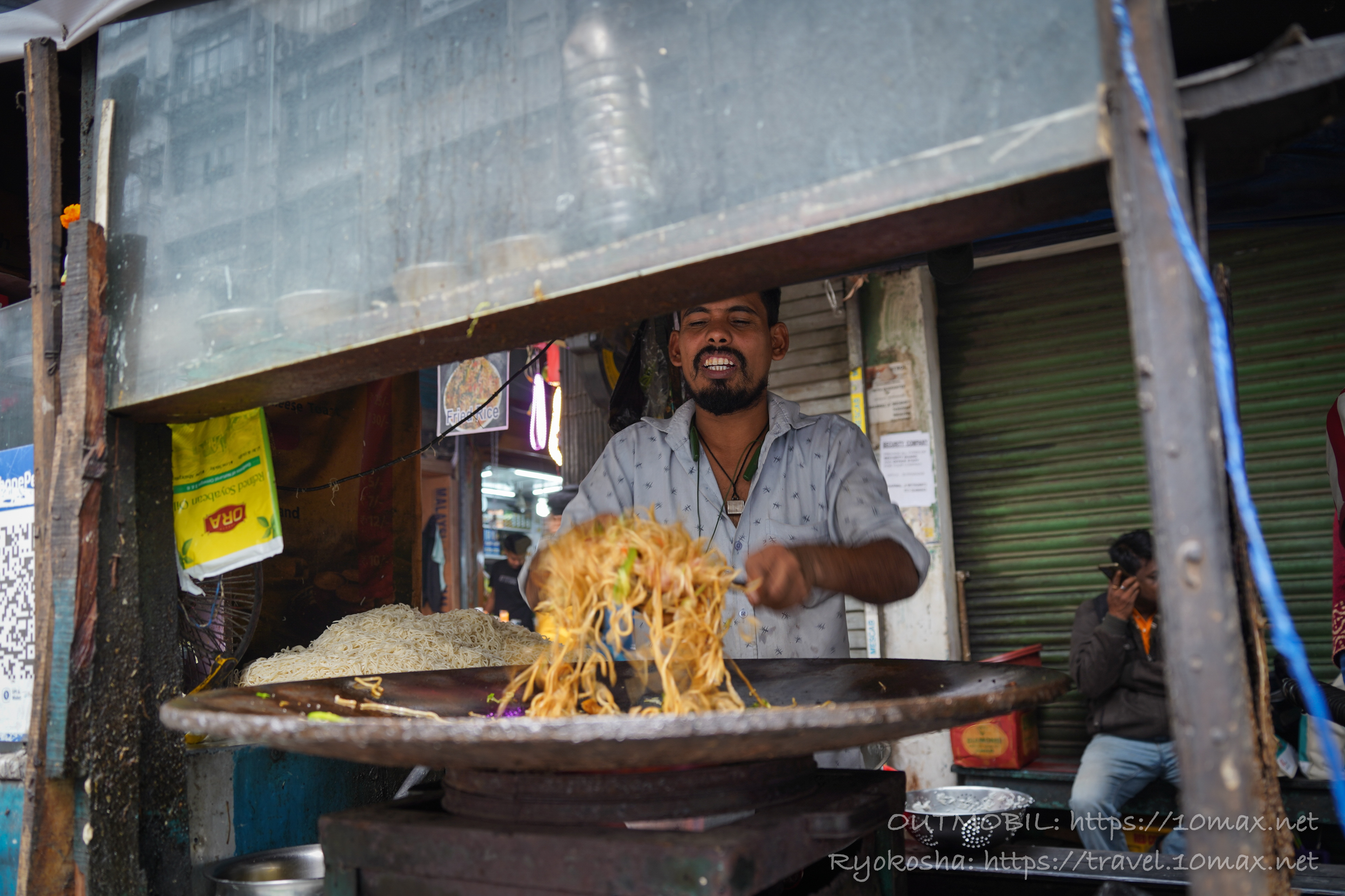 店主ニキが豪快に麺を炒め始めた。これはインドに残る中華焼きそば、「チョウメン」に違いない。今回の旅でお目当てにしていたインド中華麺のひとつで、ダージリンやシッキムでお目見えする予定が、ひと足さきにコルカタで出会えるとは幸先がよい。