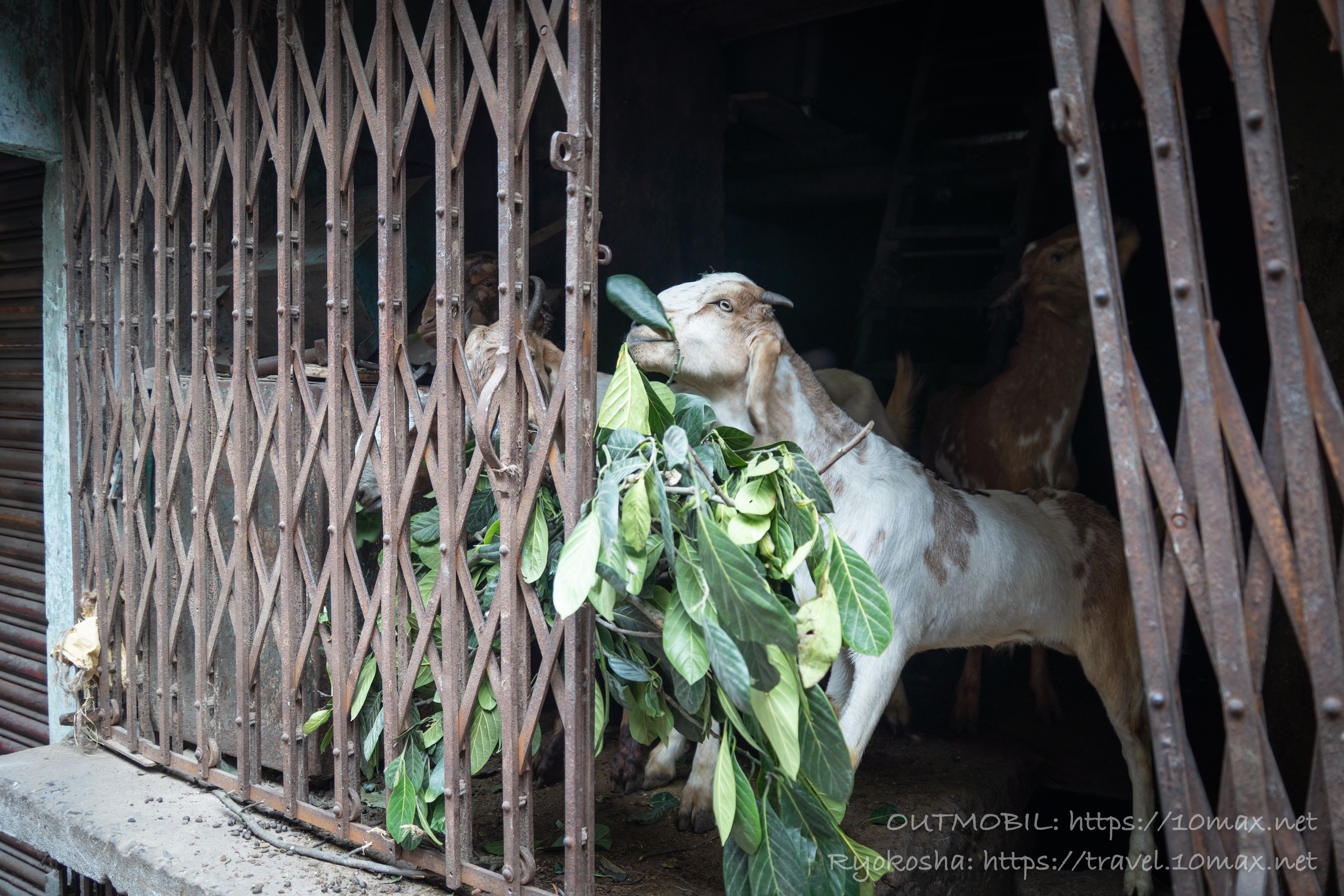 肉切りニキの笑顔に癒されていると、何やらヤギの鳴き声が聞こえてくる。すぐそばにヤギ小屋があるではないか。