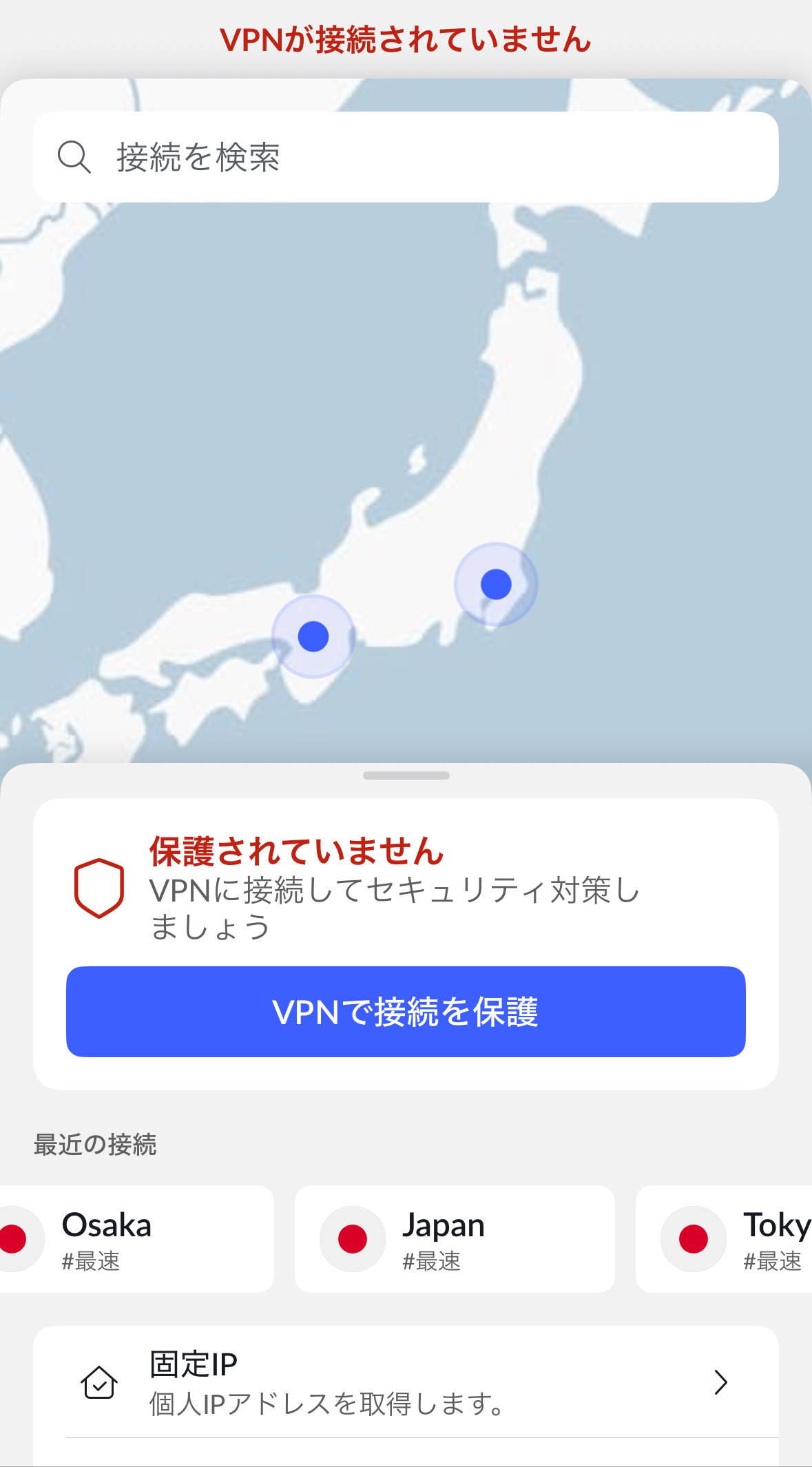 切断して接続し直せばよいだけ、と言えばそうなのですが、明示的にサーバーを変えられるのでより確実です。日本国内だけで2拠点を持つNordVPNならではですね。