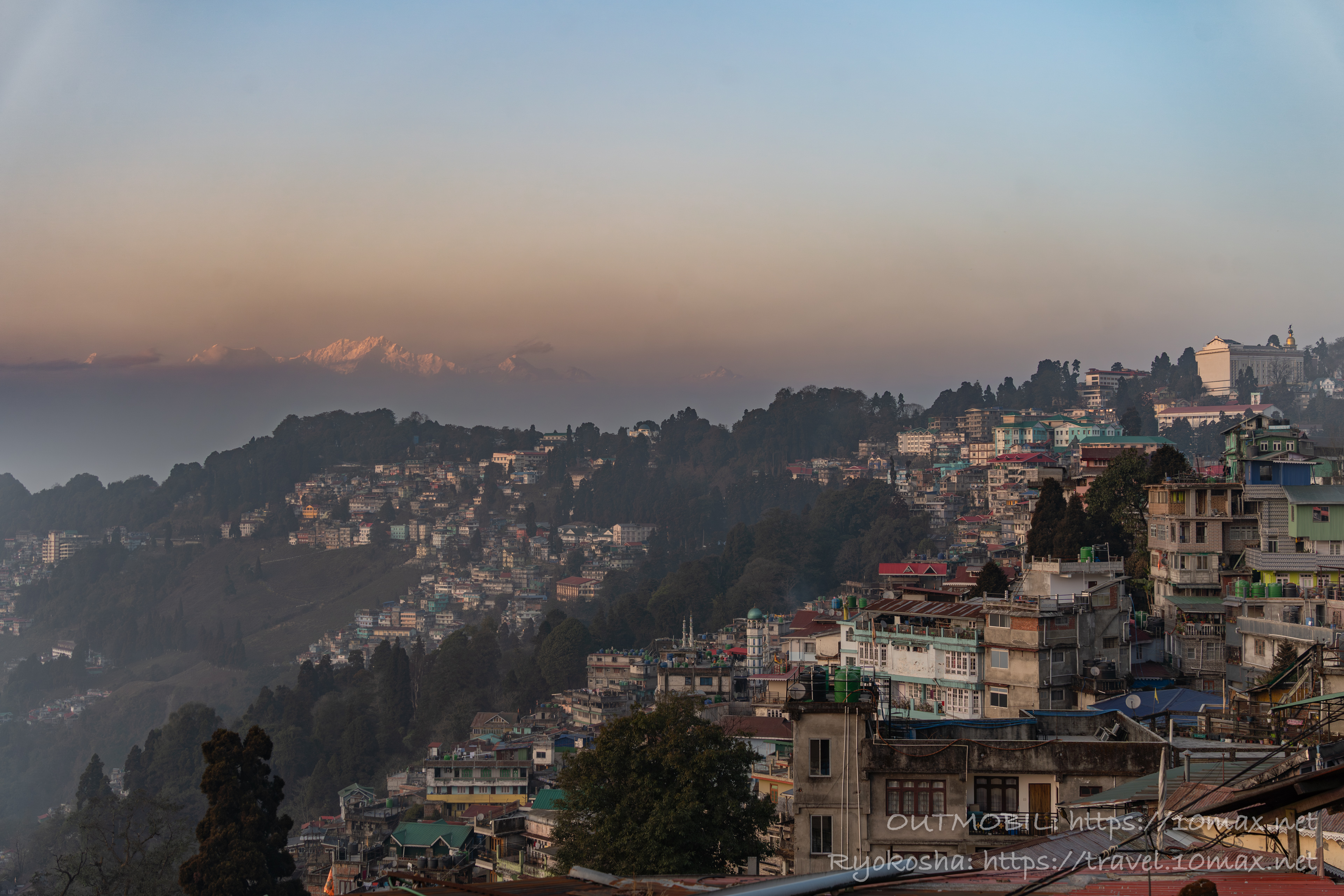 ヒマラヤに日が沈もうとしている。夕食がてら、ダージリンの町の散策に出かけることとする。