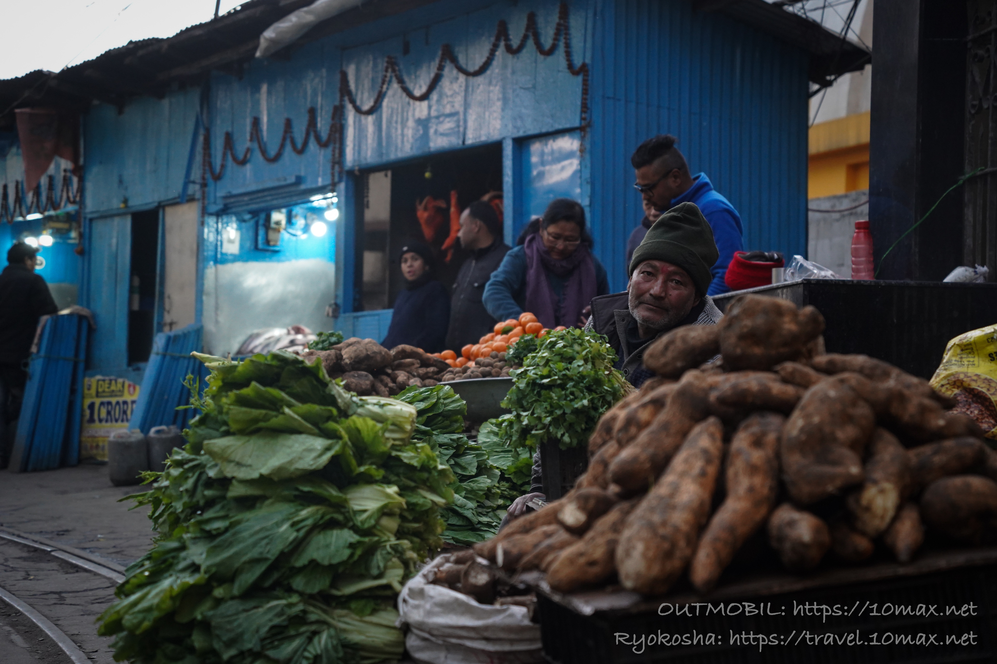 駅前の広場には市場のようなものが立っていた。人々の顔立ちを眺めていると、アーリア系の濃い風貌と日本人のような薄い系統の人々が入り混じっており、ここがインド系とチベット・ネパール系の民族の交錯点であることに改めて気付かされる。