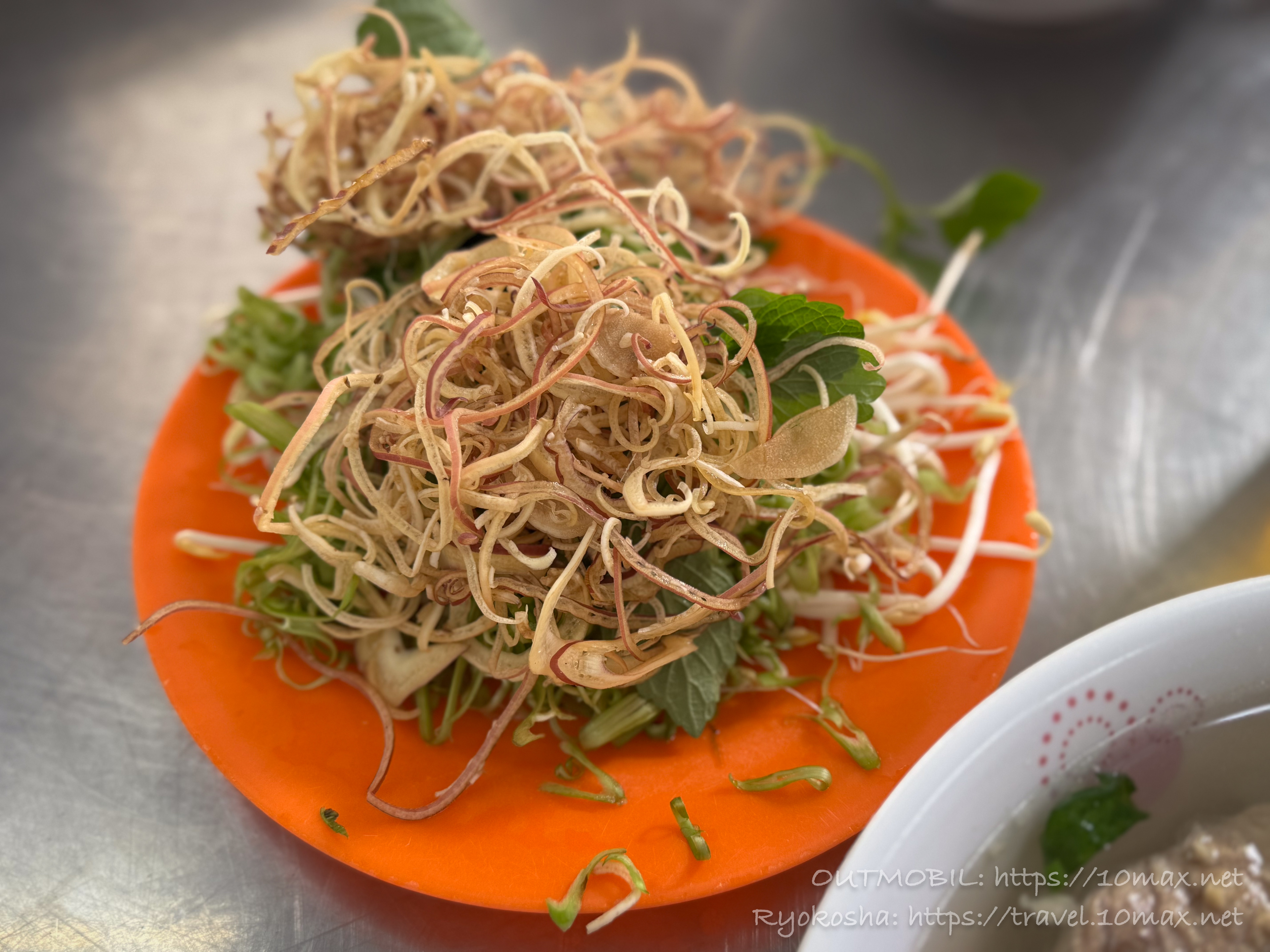 付け合せにバナナの花や空芯菜、もやしなどの野菜が出てくるので、