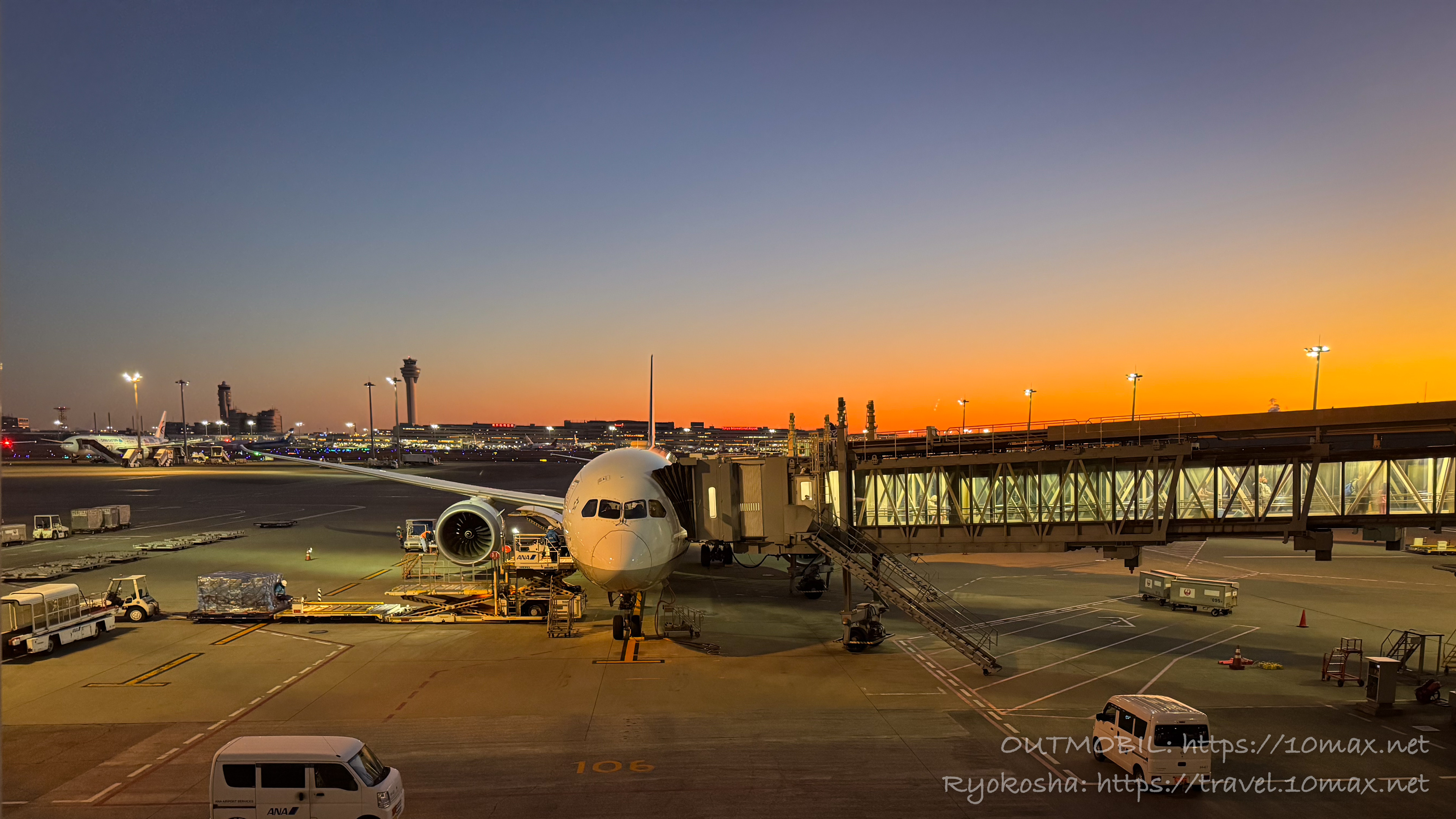 ホーチミンからの帰国便着陸後、早朝の羽田空港にて