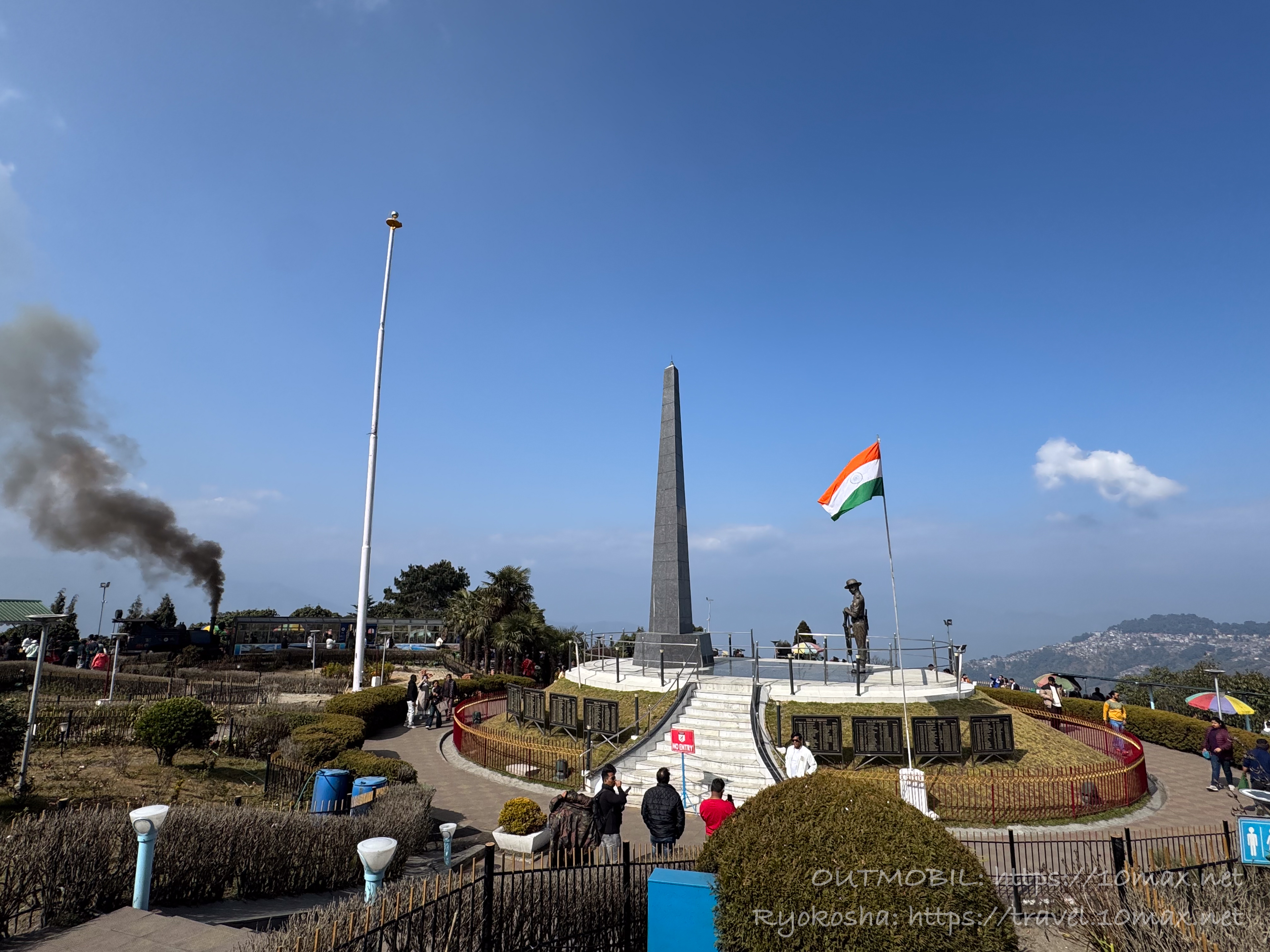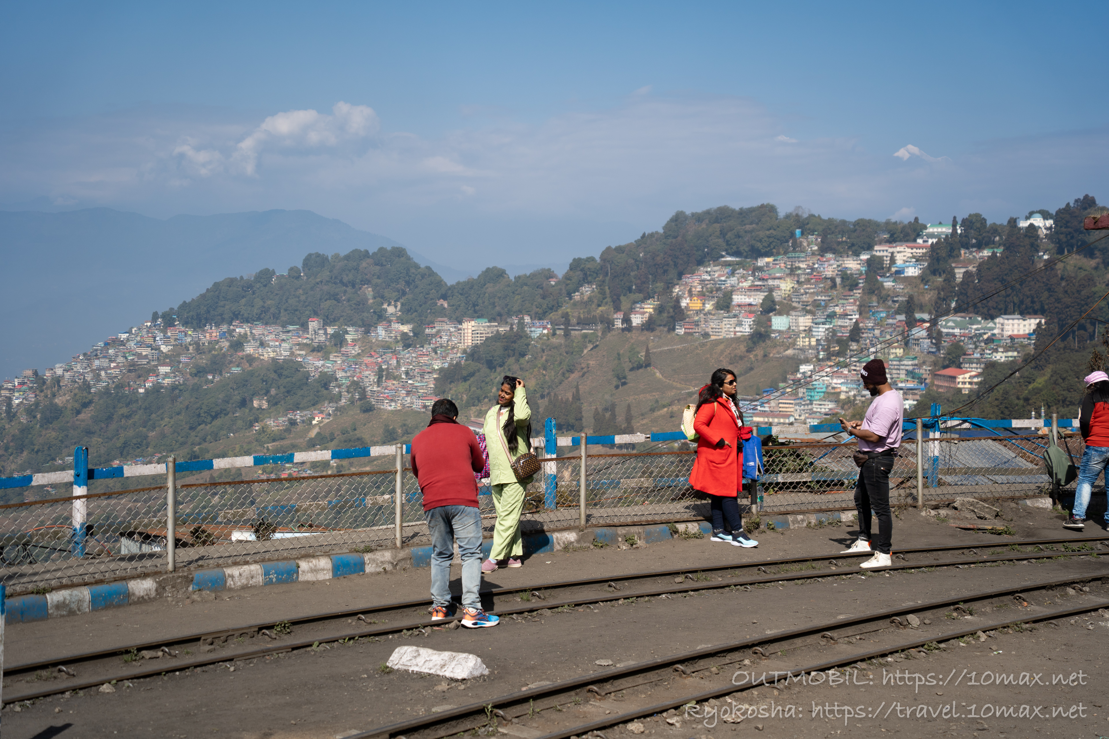 ダージリン駅は地味にカンチェンジュンガとヒマラヤの山並がよく見える絶景スポットである。下の写真では雲がかかっており三角形がポツンと頭を出しているのみだが、この後雲が晴れていく(本記事冒頭の写真)。