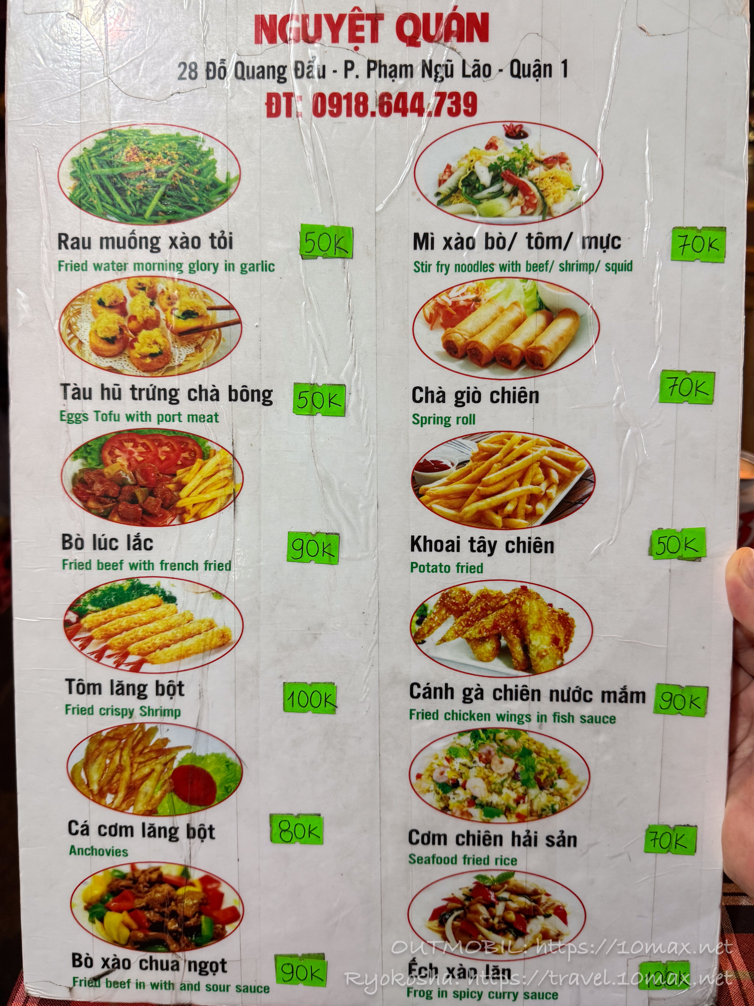 ブイビエン通りとファングーラオ通りを結ぶ「クアンダウ(Quang Đẩu)通り」という細い道沿いにあります。ブイビエン通りからクアンダウ通りに入ると、それまでの体を押し潰さんばかりの爆音と電飾から解放され、適度に活気のあるローカルな雰囲気に一変します。