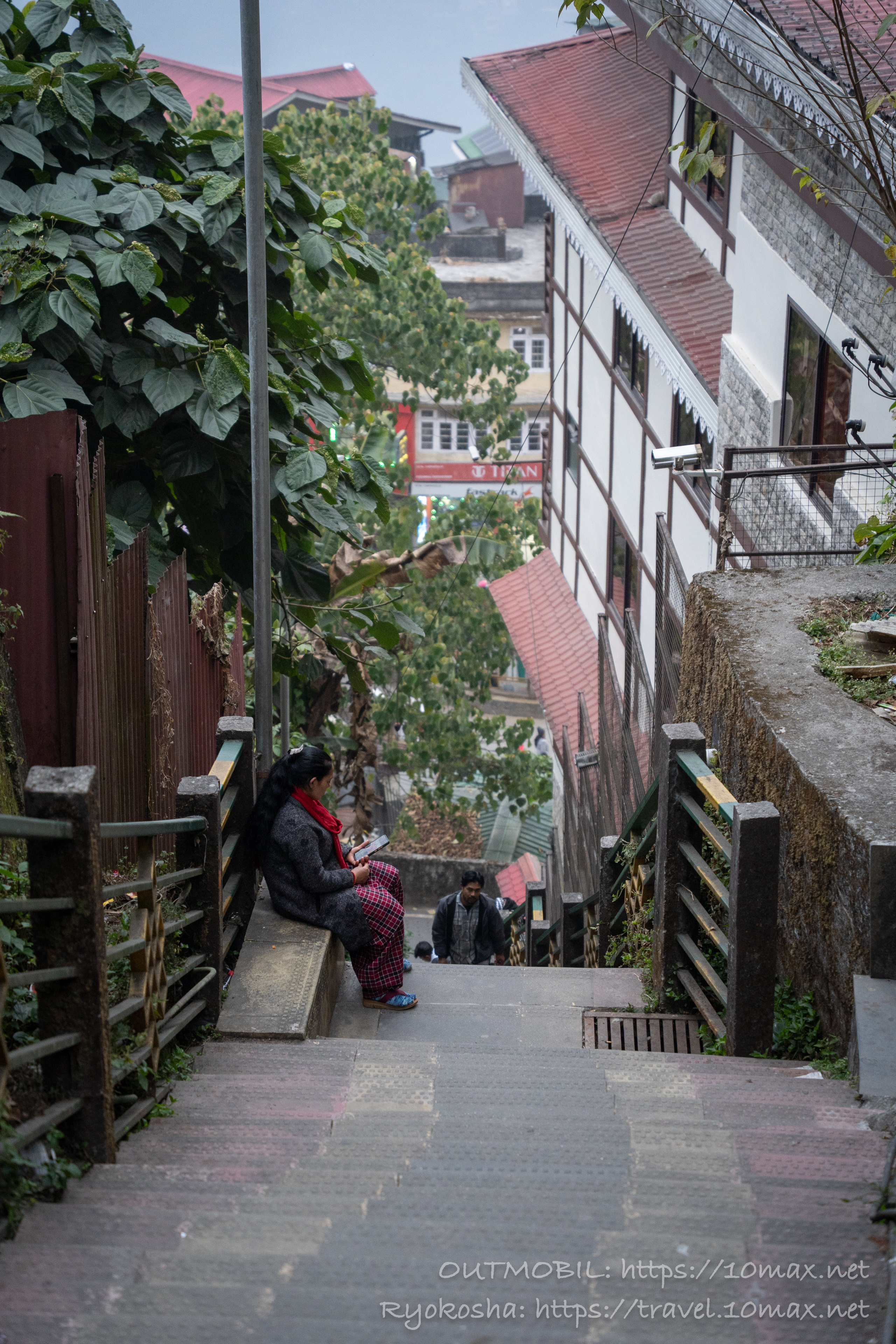 高台にある宿からガントクの繁華街、MGマーグへは、ヘビのようにうねる急な坂を降りていく以外に、時折姿を見せるこのような鬼急な階段でショートカットすることが出来る。本当に日本の温泉街のようだ。