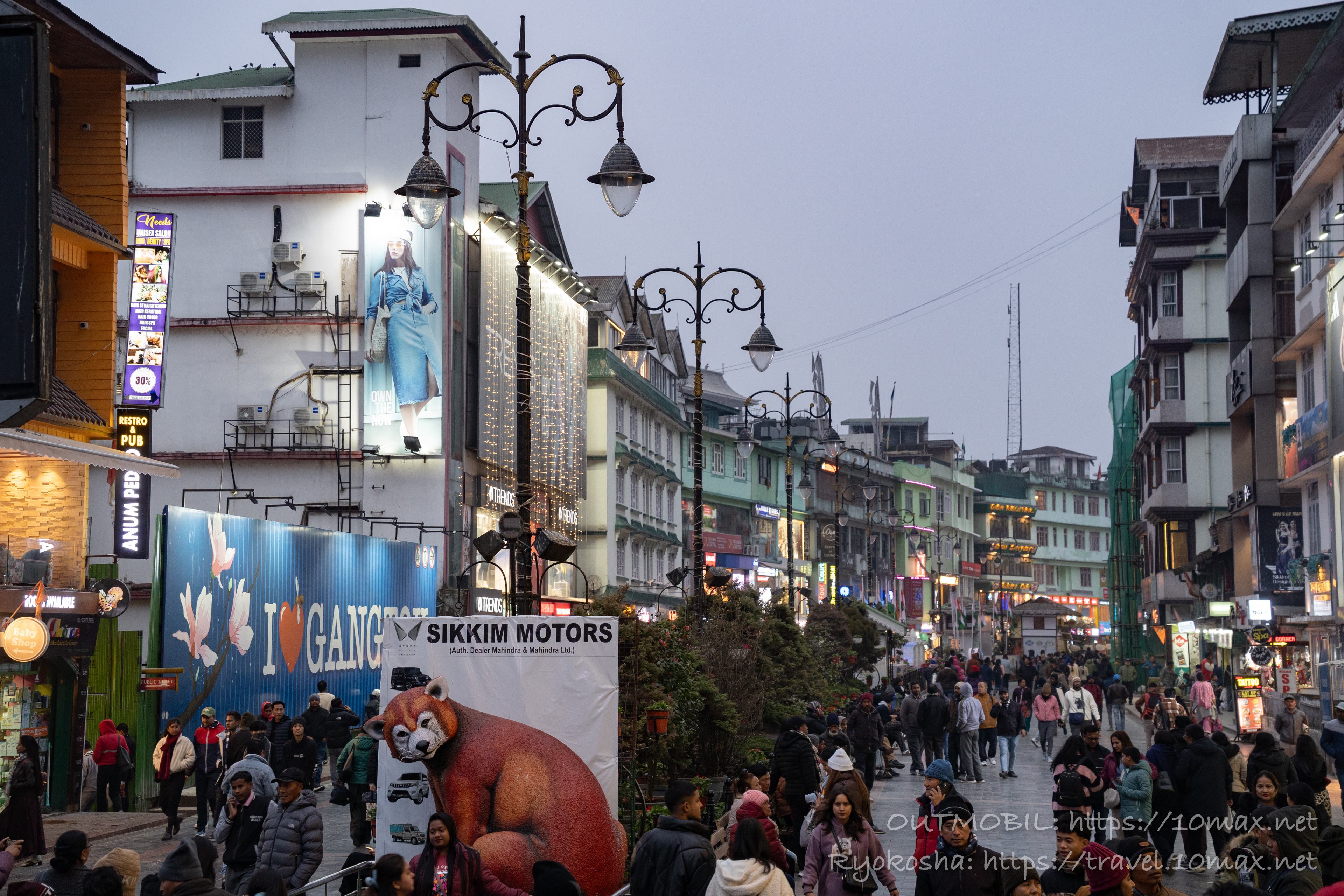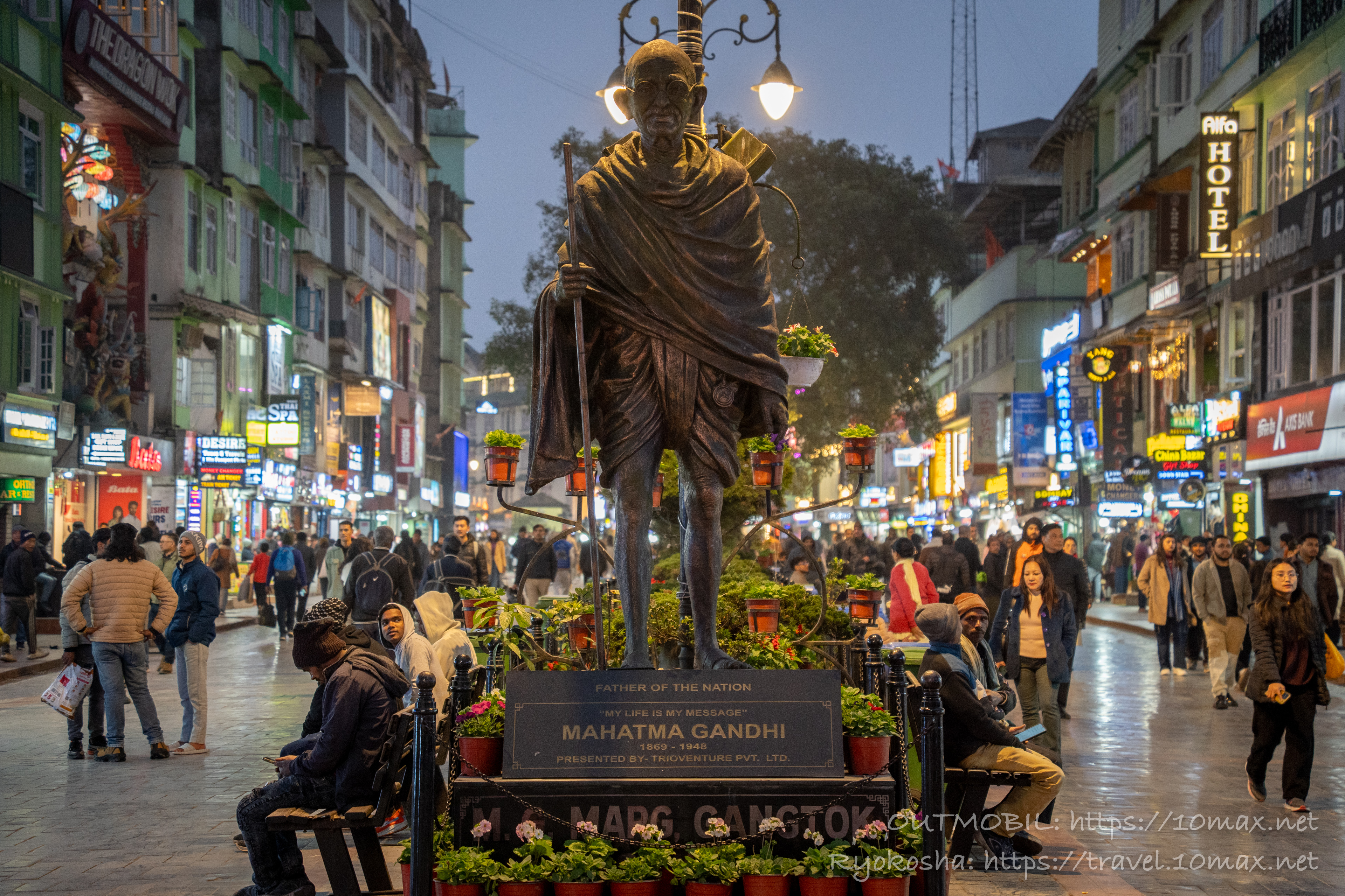 ガントクの目抜き通り、MGマーグ(M.G. Marg)。Margはヒンディ語で「通り」のことで、M.G.は「マハトマ・ガンジー」。つまりは「ガンジー通り」である。